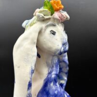 Amy’s ceramic sculptures reflect her lifelong love for bunnies, a source of comfort and joy from childhood. Each piece carries its own unique personality, from playful and whimsical to elegant and serene. The angel bunny emerged spontaneously, inspired by the sense of angels around us. Amy’s work embodies a sense of fun and approachability, contributing to the diverse tapestry of ceramics at the Sedona Art Center. “Through my art, I hope to share this joy and inspiration with others.” Through the nurturing and lessons given by Dennis Ott, Amy’s artistry emerged and bunnies hopped forth.