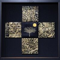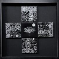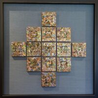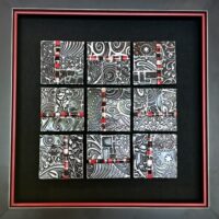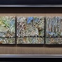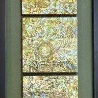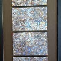 My metal embossed pieces begin with heavy metal foils in copper, brass and aluminum. They are embossed using multiple plastic embossing folders that are run through a rolling mill. I use alcohol inks to color and then begin the process of cutting and assembling my mosaics. They are somewhat like a jigsaw puzzle that I get to design and assemble! I sometimes use glass tile beads to add a little more dimension.