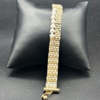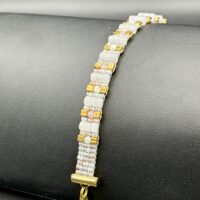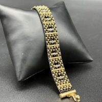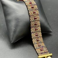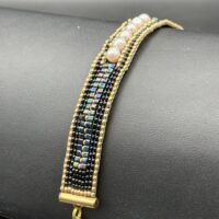 Nancy’s sister, Donna, gifted her a bead loom. She is inspired by the ancient history and relative culture of beading. She creates organically and intuitively, weaving with Miyuki Glass Seed Beads. Miyuki beads are an essential part of Japanese textile and jewelry-making traditions, with a long history of craftsmanship and precision. Her beadwork may include the use of crystals, a variety of Jaspers, Turquoise, Carnelian, Onyx, Tiger’s Eye, Quartz, Opalite, Lapis Lazuli and Labradorite and Mother of Pearl and Crystals.