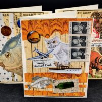 As a kid Susan found her first yard sale at age 11 and purchased a intricate Italian wood inlayed playing card box and some minis and was captured. She was always intrigued and collected small items, rocks, wood, nature stuff, old boxes, containers and especially groups of small things her entire life. She always found it fun to arrange, set up and make collages, mostly in old boxes. At age 46 she got first real exposure to art by taking a job at Whitehall Gallery in Historic Annapolis, Md. There she interacted daily with artists, learned framing, started making and selling one of a kind greeting cards and her unique and desirable collage boxes. As with most artists, she was inspired when buyers gave compliments and encouraged her to show more of her creations. Sue’s first show was a side window of the Annapolis gallery and displayed many of her collage boxes. In 2011 she moved to San Jose, CA and got a job managing The Los Gatos Art Gallery for over 2 years while continuing to create her collages. Susan moved to Cottonwood, AZ in February 2020 and has since exhibited art locally.