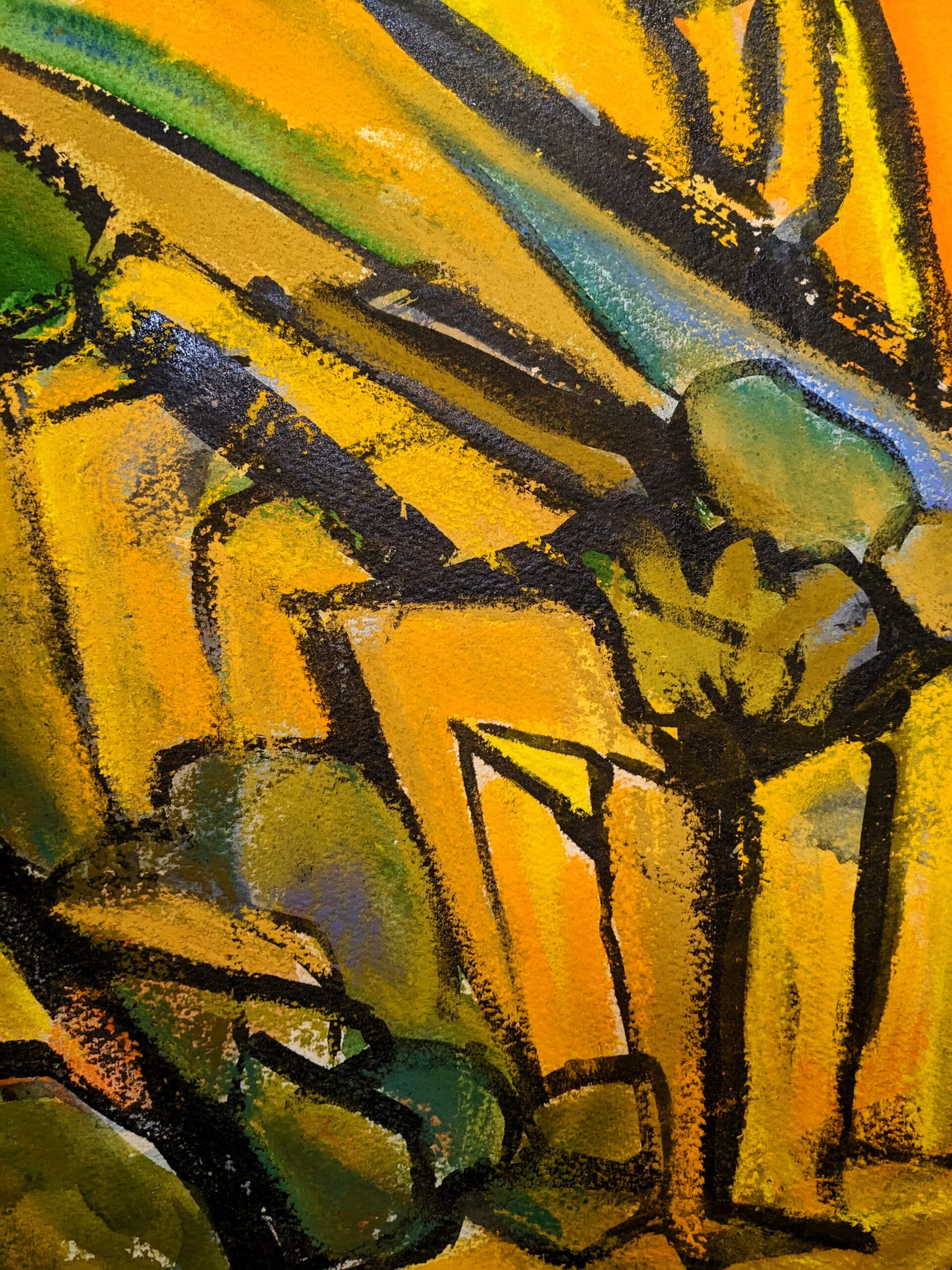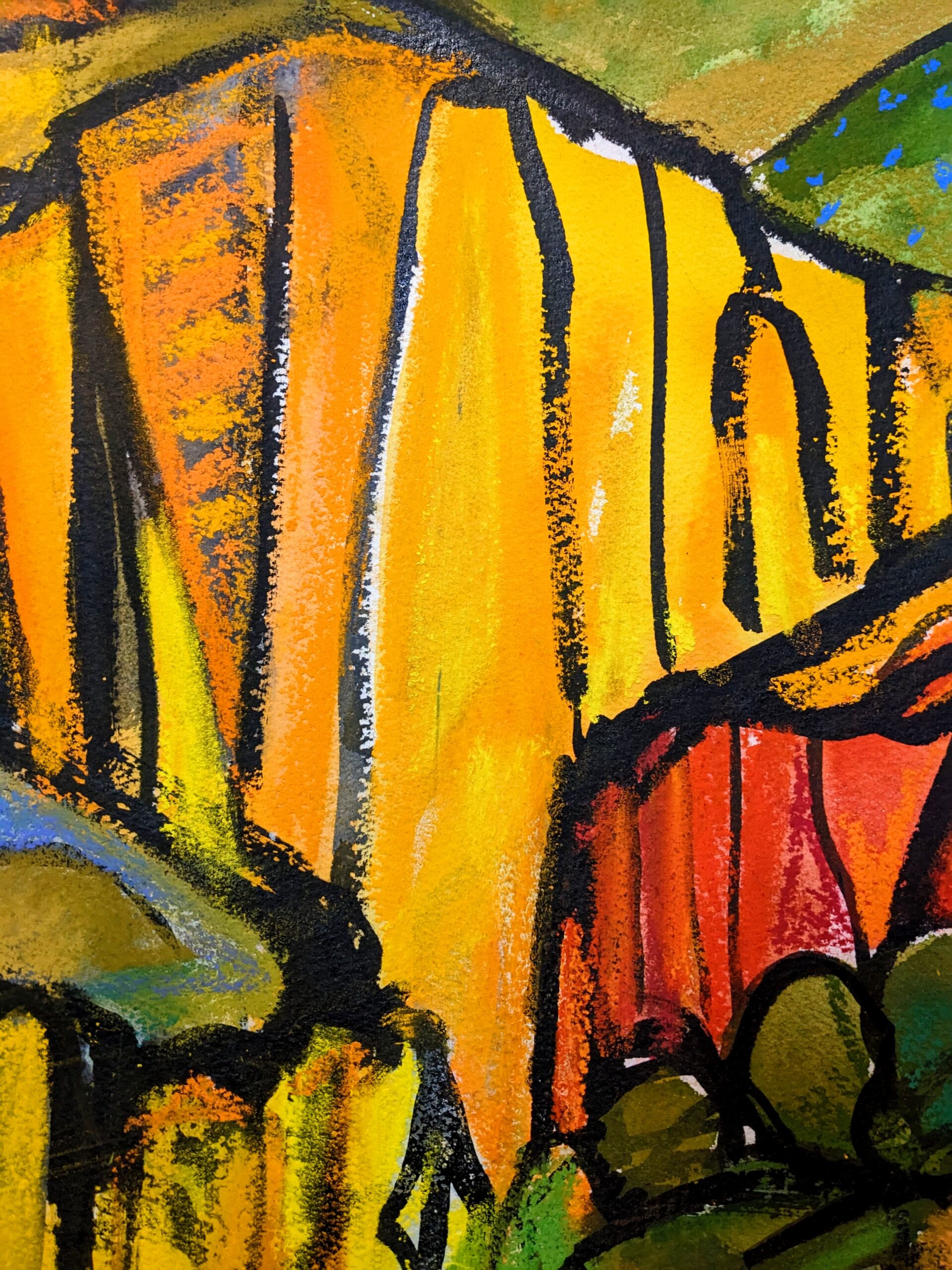 Myrna Harrison 1932-2025 Myrna Harrison was born in Hollywood, CA in 1932. Her father was an animator for the cartoon division of Columbia pictures, her mother a hat designer. She cannot remember a time that drawing and painting were not part of her life. Her family moved to New York City in 1943, where she attended Music and Art High School. After briefly attending the University of New Mexico in Albuquerque, she returned to New York City to study art at the Hans Hofmann School of Fine Art, NYC and Provincetown, MA. She showed in numerous juried and invitational group shows in the 50s, including the International Watercolor Biennial at the Brooklyn Museum. She married Earl Pierce, a painter and former Hofmann student in 1954. In 1959 she received a BA (magna cum laude with Honors in English) and in 1960 an MA (English) from New York University. At NYU she studied with Philip Guston. In 1960, Myrna and Earl moved to California, where she was a Teaching Assistant in the English department at UC, Berkeley. She and Earl Pierce were divorced in 1965. She remained in California for the next fifteen years and became Assistant Dean of Instruction at Contra Costa College in 1974 and Dean of Instruction at San Jose City College in 1976. In 1980 she moved to Phoenix, Arizona to become President of Rio Salado Community College (1980-85), Gateway Community College, (1985-88) and Phoenix College (1988-93). She retired in 1993 and moved to Wickenburg, Arizona to a studio overlooking a saguaro-filled canyon of the Sonoran Desert. Her expressionist, color-saturated paintings of the desert, canyons and mountains surrounding her evoke the vibrant, fierce landscape of the southwest. In an interview with Arizona PBS in 2000, the reporter asked Myrna: “When you paint, do you think about the viewer?” Myrna replied: I do believe that you must get your work out there and have viewers. I think that otherwise, it’s an incomplete act. When I hear a painter say, ‘I only paint for myself and I only paint what makes me feel good,’ I think: No, painting is a communication. The process is unfinished if the work isn’t seen by other people. I want people, when they see my work, to understand what I feel about the desert. You cannot live here without enormously adapting to it. The desert will not adapt to you. I want people to see that- the intensity of it and the dynamic quality of it, and the fierceness of it. It’s a very fierce landscape. It doesn’t even meet you halfway- just like the ocean. You can put your toes in, and splash around a little- but you can’t go any further. Myrna Harrison passed in January 2025.