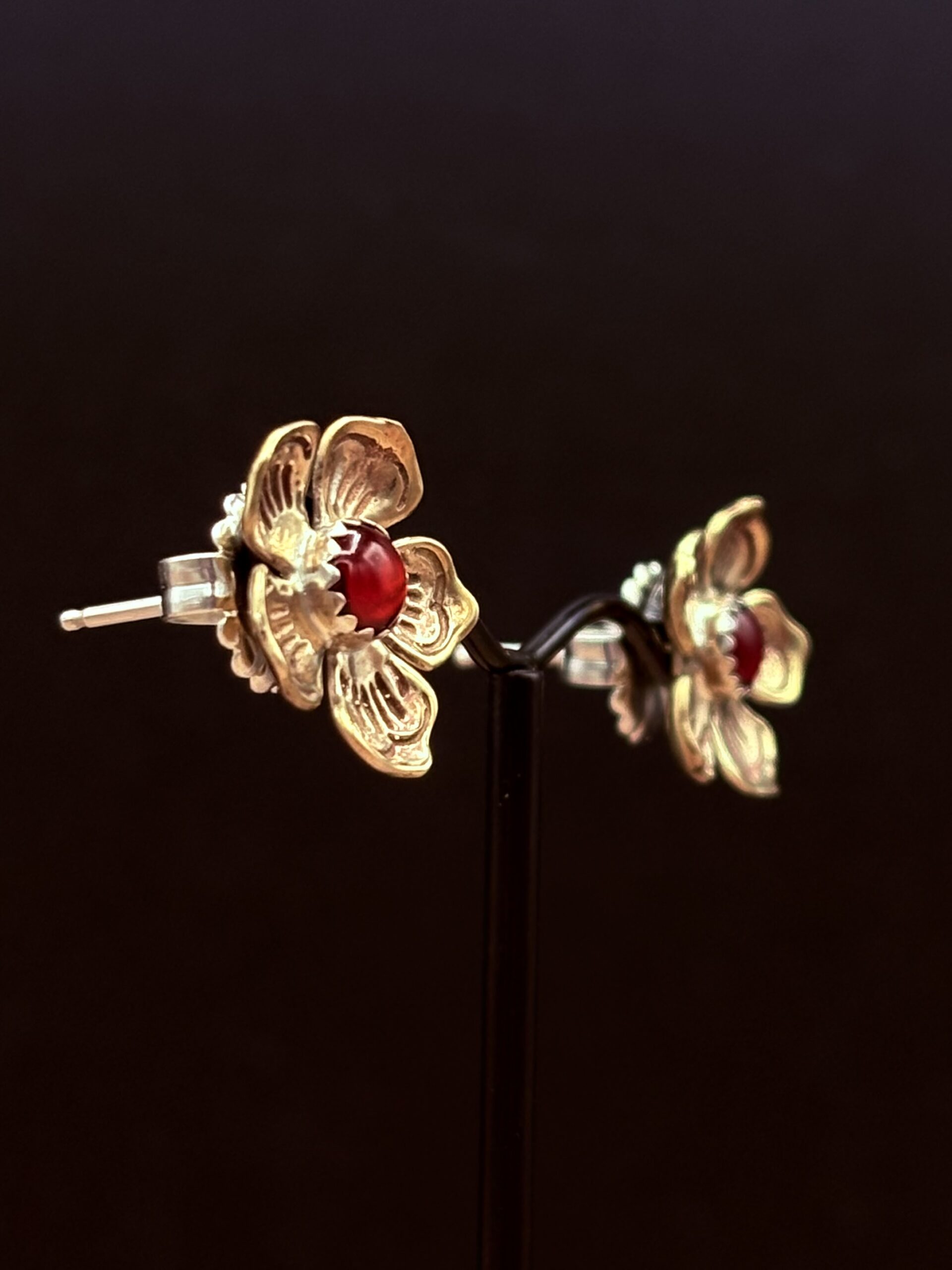 Bronze 5-Petal Flower Post Earrings with 5mm New Zealand Paua Shell by Tom Yazzie TYE-915