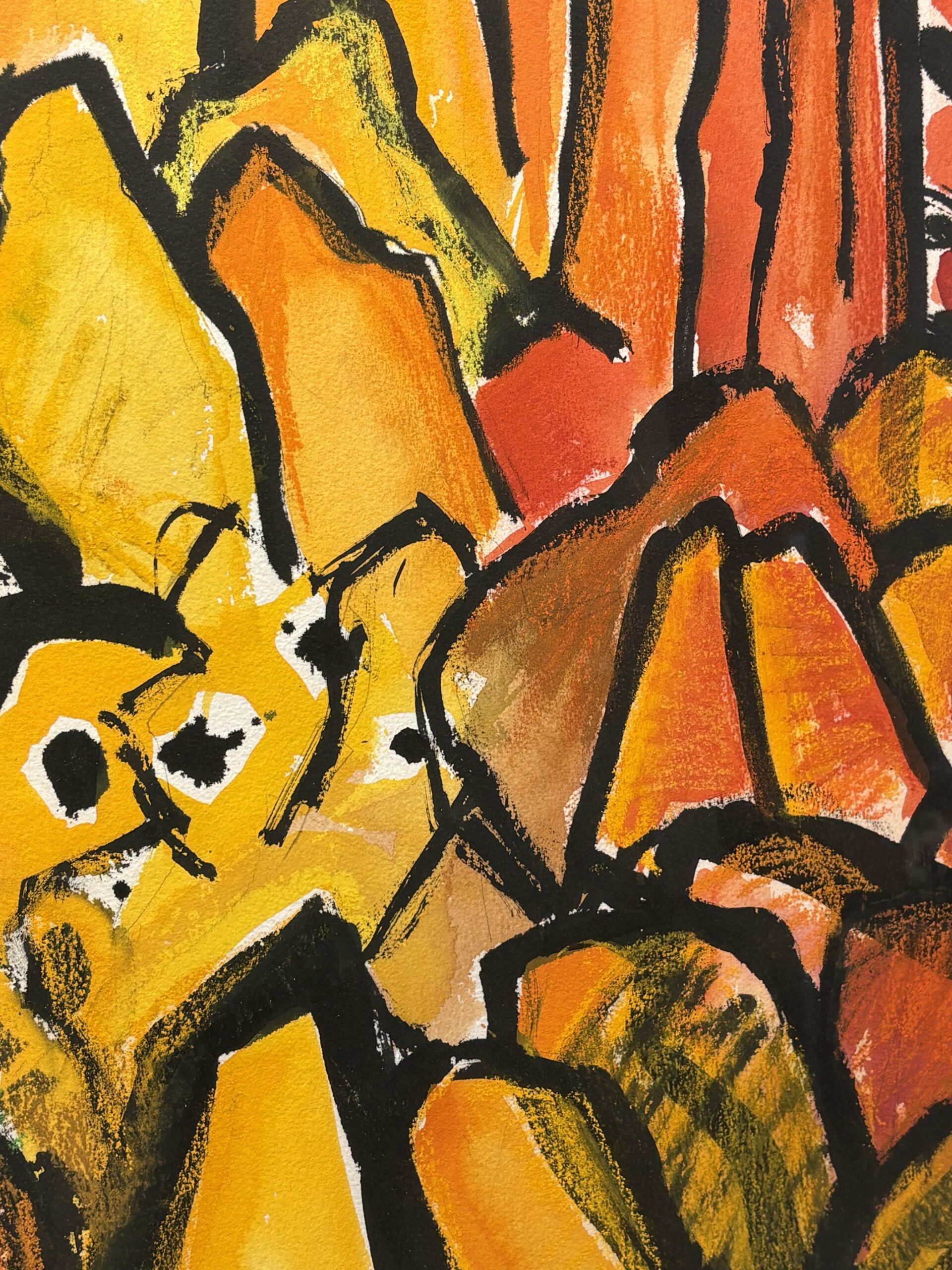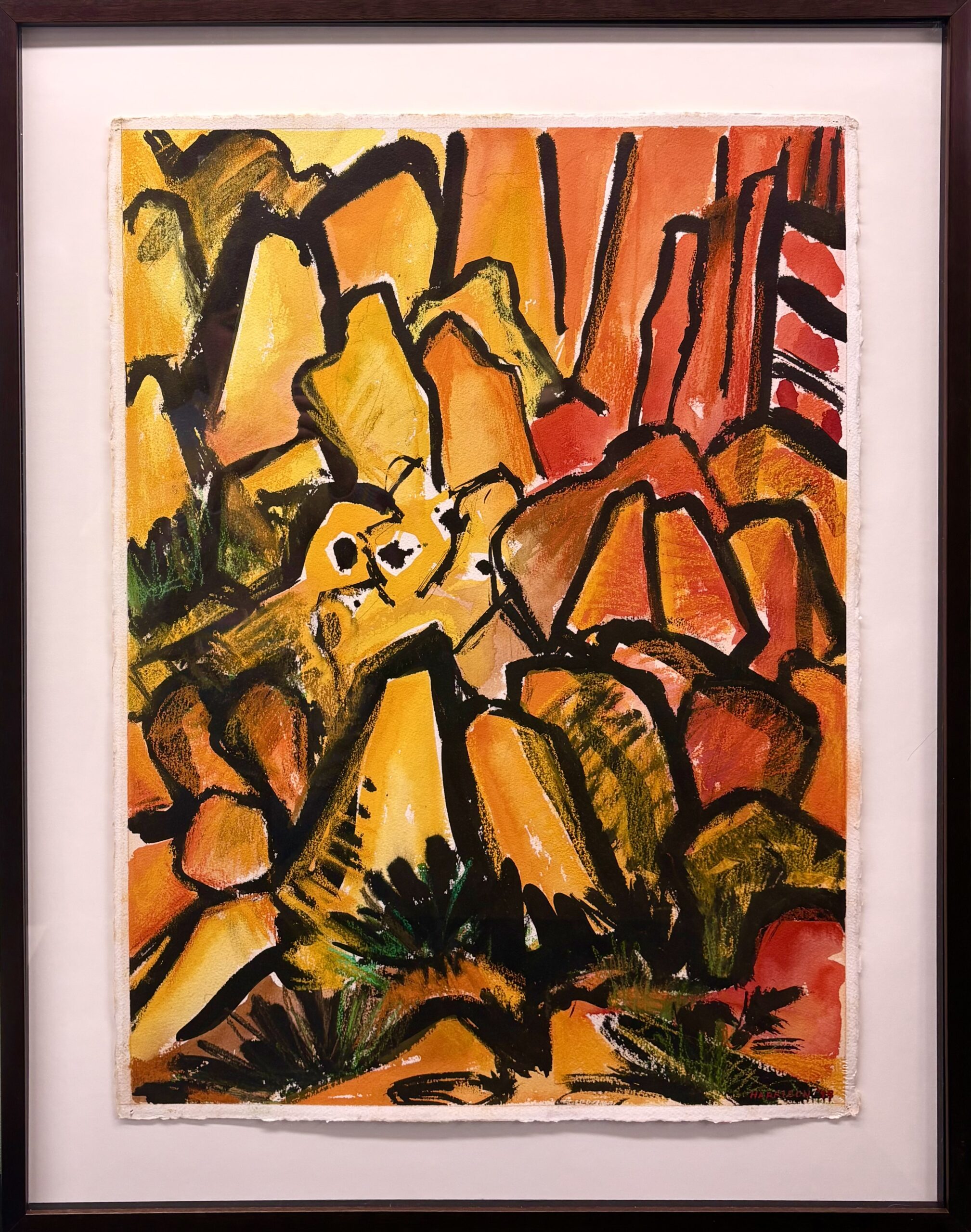 Myrna Harrison 1932-2025 Myrna Harrison was born in Hollywood, CA in 1932. Her father was an animator for the cartoon division of Columbia pictures, her mother a hat designer. She cannot remember a time that drawing and painting were not part of her life. Her family moved to New York City in 1943, where she attended Music and Art High School. After briefly attending the University of New Mexico in Albuquerque, she returned to New York City to study art at the Hans Hofmann School of Fine Art, NYC and Provincetown, MA. She showed in numerous juried and invitational group shows in the 50s, including the International Watercolor Biennial at the Brooklyn Museum. She married Earl Pierce, a painter and former Hofmann student in 1954. In 1959 she received a BA (magna cum laude with Honors in English) and in 1960 an MA (English) from New York University. At NYU she studied with Philip Guston. In 1960, Myrna and Earl moved to California, where she was a Teaching Assistant in the English department at UC, Berkeley. She and Earl Pierce were divorced in 1965. She remained in California for the next fifteen years and became Assistant Dean of Instruction at Contra Costa College in 1974 and Dean of Instruction at San Jose City College in 1976. In 1980 she moved to Phoenix, Arizona to become President of Rio Salado Community College (1980-85), Gateway Community College, (1985-88) and Phoenix College (1988-93). She retired in 1993 and moved to Wickenburg, Arizona to a studio overlooking a saguaro-filled canyon of the Sonoran Desert. Her expressionist, color-saturated paintings of the desert, canyons and mountains surrounding her evoke the vibrant, fierce landscape of the southwest. In an interview with Arizona PBS in 2000, the reporter asked Myrna: “When you paint, do you think about the viewer?” Myrna replied: I do believe that you must get your work out there and have viewers. I think that otherwise, it’s an incomplete act. When I hear a painter say, ‘I only paint for myself and I only paint what makes me feel good,’ I think: No, painting is a communication. The process is unfinished if the work isn’t seen by other people. I want people, when they see my work, to understand what I feel about the desert. You cannot live here without enormously adapting to it. The desert will not adapt to you. I want people to see that- the intensity of it and the dynamic quality of it, and the fierceness of it. It’s a very fierce landscape. It doesn’t even meet you halfway- just like the ocean. You can put your toes in, and splash around a little- but you can’t go any further. Myrna Harrison passed in January 2025.
