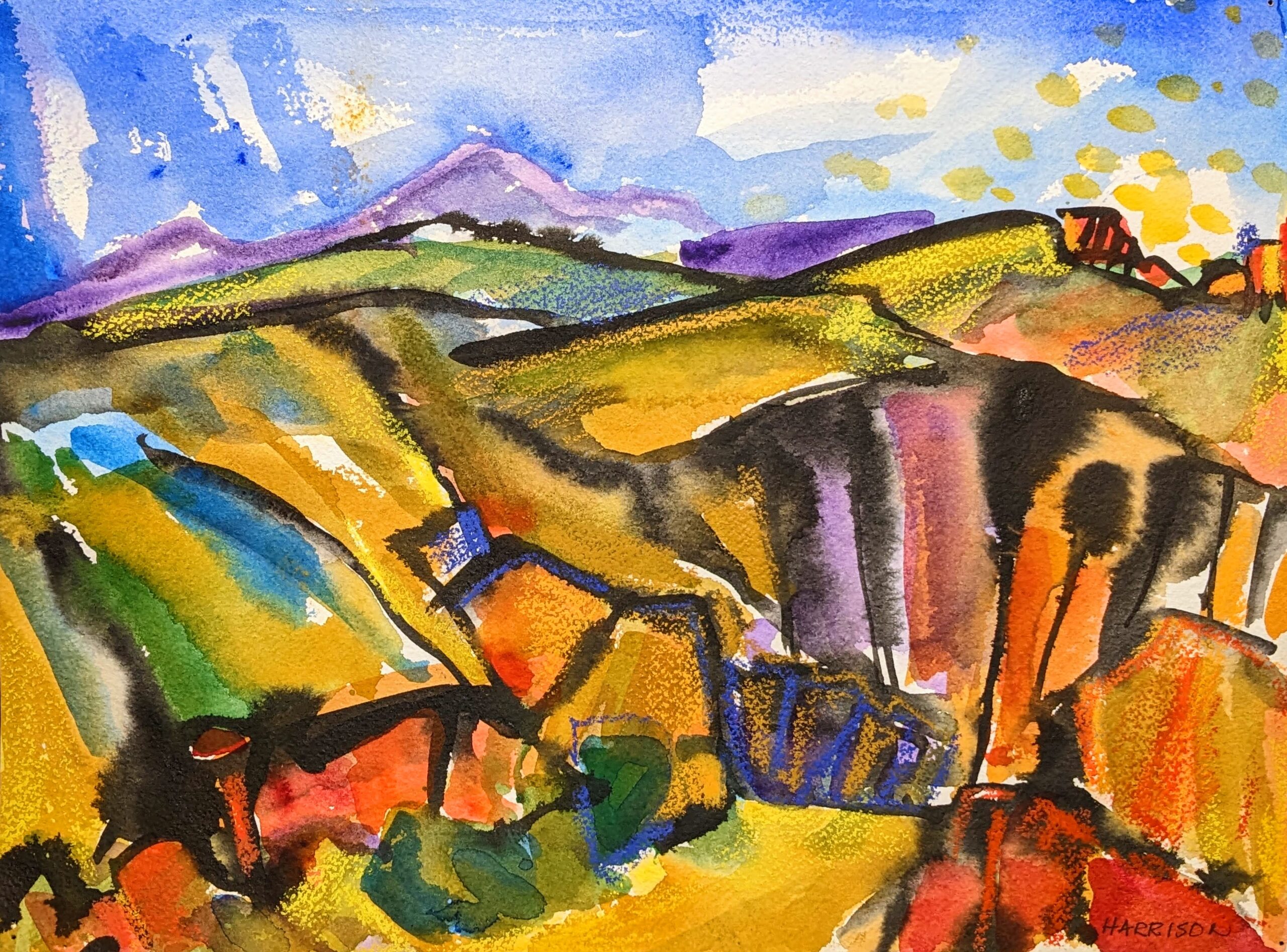 Myrna Harrison 1932-2025 Myrna Harrison was born in Hollywood, CA in 1932. Her father was an animator for the cartoon division of Columbia pictures, her mother a hat designer. She cannot remember a time that drawing and painting were not part of her life. Her family moved to New York City in 1943, where she attended Music and Art High School. After briefly attending the University of New Mexico in Albuquerque, she returned to New York City to study art at the Hans Hofmann School of Fine Art, NYC and Provincetown, MA. She showed in numerous juried and invitational group shows in the 50s, including the International Watercolor Biennial at the Brooklyn Museum. She married Earl Pierce, a painter and former Hofmann student in 1954. In 1959 she received a BA (magna cum laude with Honors in English) and in 1960 an MA (English) from New York University. At NYU she studied with Philip Guston. In 1960, Myrna and Earl moved to California, where she was a Teaching Assistant in the English department at UC, Berkeley. She and Earl Pierce were divorced in 1965. She remained in California for the next fifteen years and became Assistant Dean of Instruction at Contra Costa College in 1974 and Dean of Instruction at San Jose City College in 1976. In 1980 she moved to Phoenix, Arizona to become President of Rio Salado Community College (1980-85), Gateway Community College, (1985-88) and Phoenix College (1988-93). She retired in 1993 and moved to Wickenburg, Arizona to a studio overlooking a saguaro-filled canyon of the Sonoran Desert. Her expressionist, color-saturated paintings of the desert, canyons and mountains surrounding her evoke the vibrant, fierce landscape of the southwest. In an interview with Arizona PBS in 2000, the reporter asked Myrna: “When you paint, do you think about the viewer?” Myrna replied: I do believe that you must get your work out there and have viewers. I think that otherwise, it’s an incomplete act. When I hear a painter say, ‘I only paint for myself and I only paint what makes me feel good,’ I think: No, painting is a communication. The process is unfinished if the work isn’t seen by other people. I want people, when they see my work, to understand what I feel about the desert. You cannot live here without enormously adapting to it. The desert will not adapt to you. I want people to see that- the intensity of it and the dynamic quality of it, and the fierceness of it. It’s a very fierce landscape. It doesn’t even meet you halfway- just like the ocean. You can put your toes in, and splash around a little- but you can’t go any further. Myrna Harrison passed in January 2025.