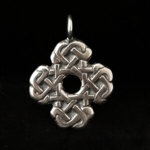 This cross is a design in silver by Deanne McKeown inspired by traditional Celtic knotwork.