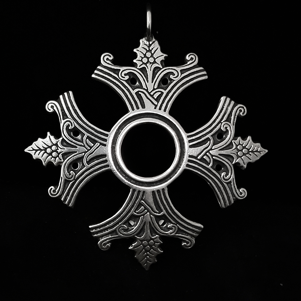 The design incorporates what appears to be a holly motif with an unfolding lily. I found it to be very elegant and expanded this single motif into four-armed cross.