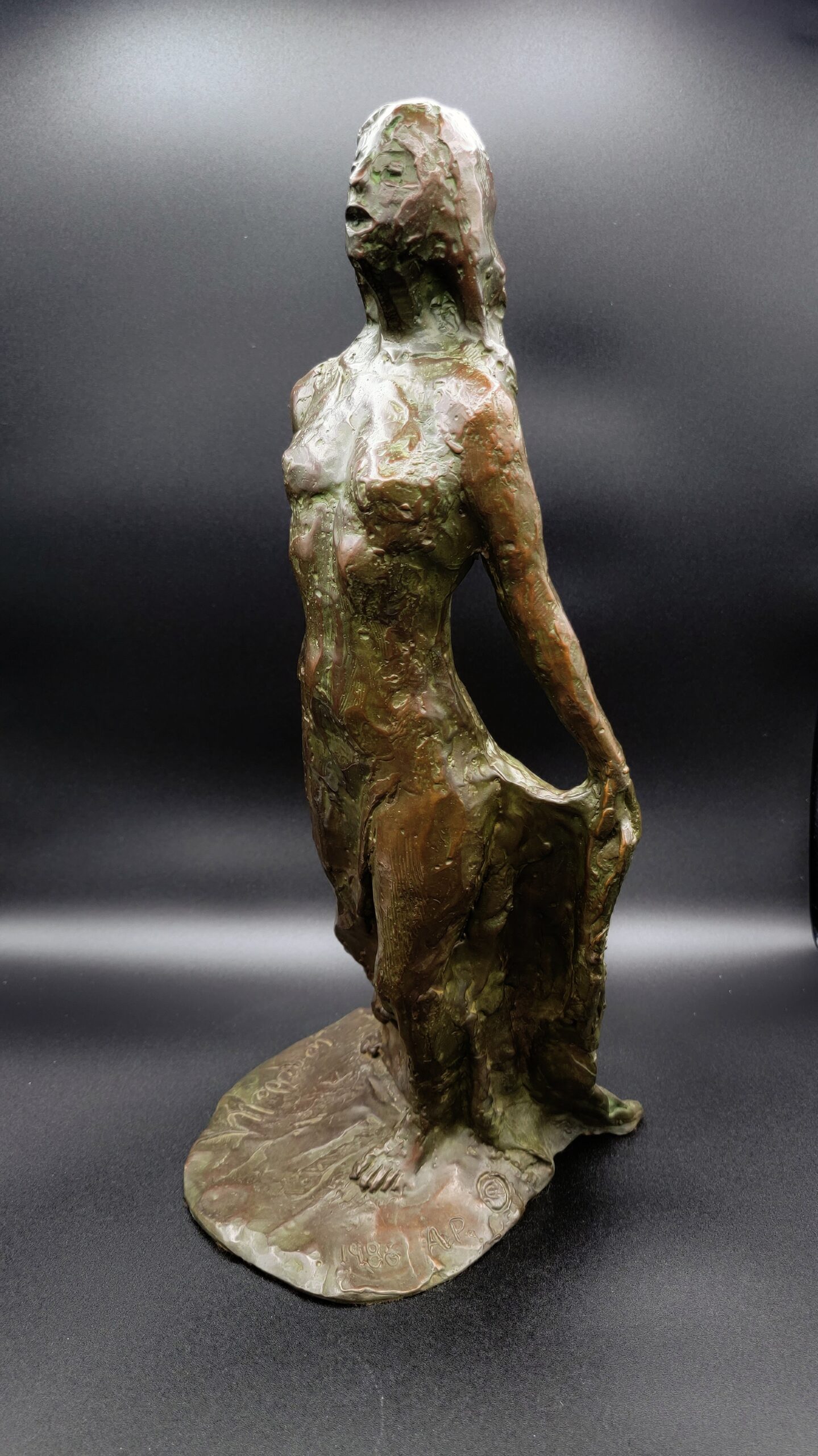 Joh>John Henry Waddell, born in Des Moines, Iowa in 1921, began teaching art to adults when he was 16. After Army service, he achieved his MFA and MAE from the School of the Art Institute of Chicago. Waddell headed art education at the New Bauhaus in Chicago, then at Arizona State University, before retiring from university teaching at age 40 to allow full time for his mostly figurative art. March 25, 1949 Waddell married artist Ruth Holland who became the artist’s muse, inspiring him both in life and art. Through the decades Ruth appeared in many of his paintings and sculptures. John also became a primary muse in Ruth’s work.