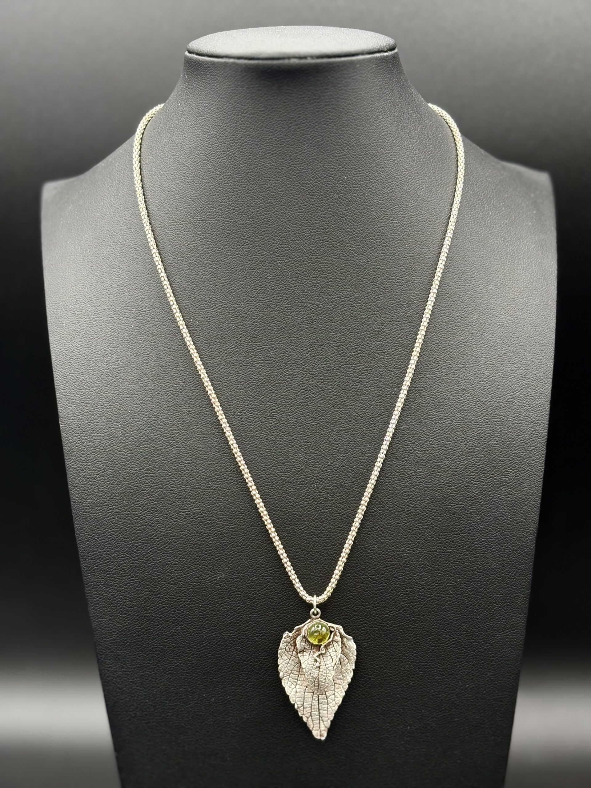 Fine Silver and Peridot Leaf Necklace by Joan Roberts 5022n