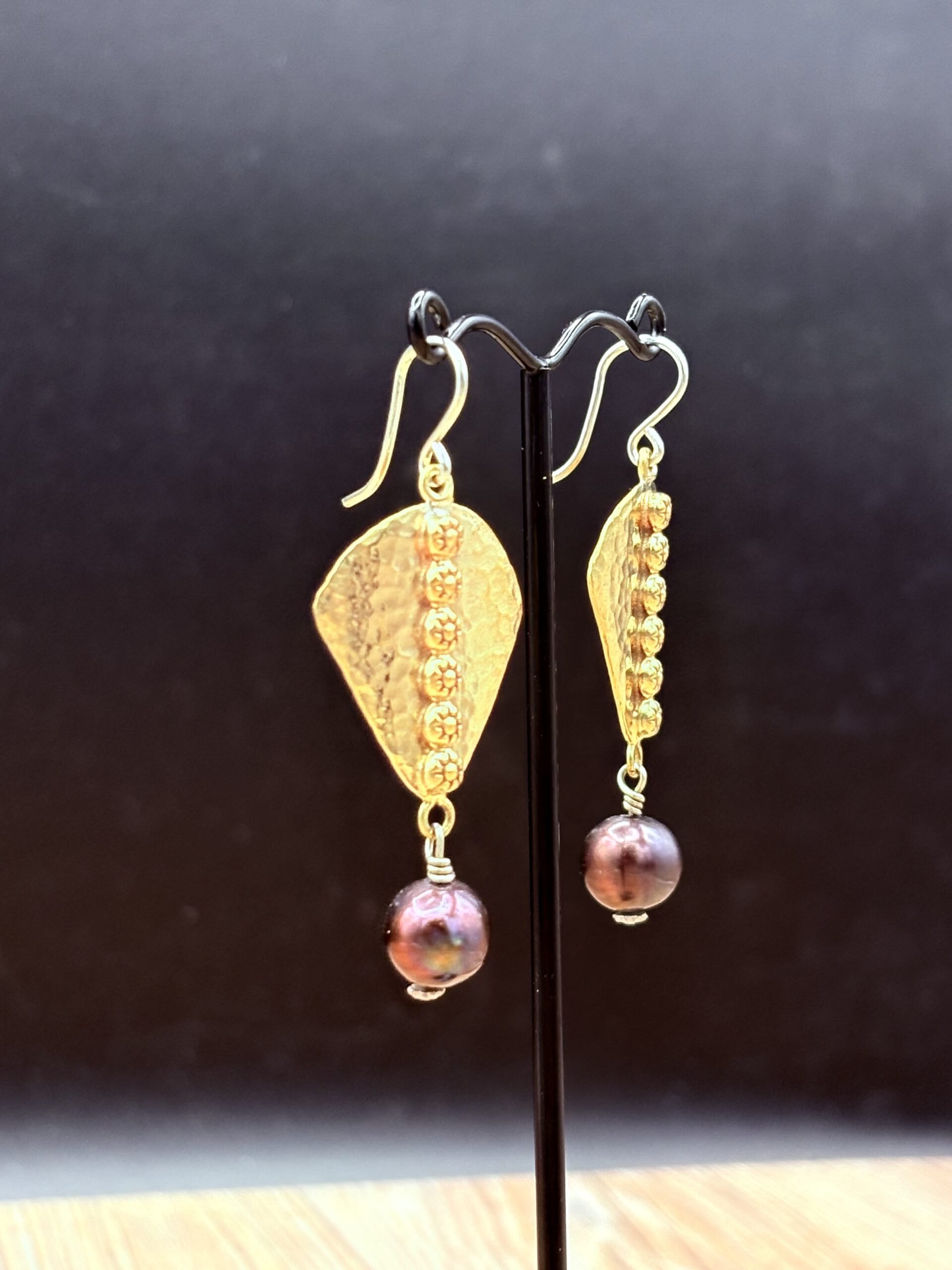 Inverted Bronze Shield Earrings with Tahitian Pearls by Tom Yazzie TYE-875