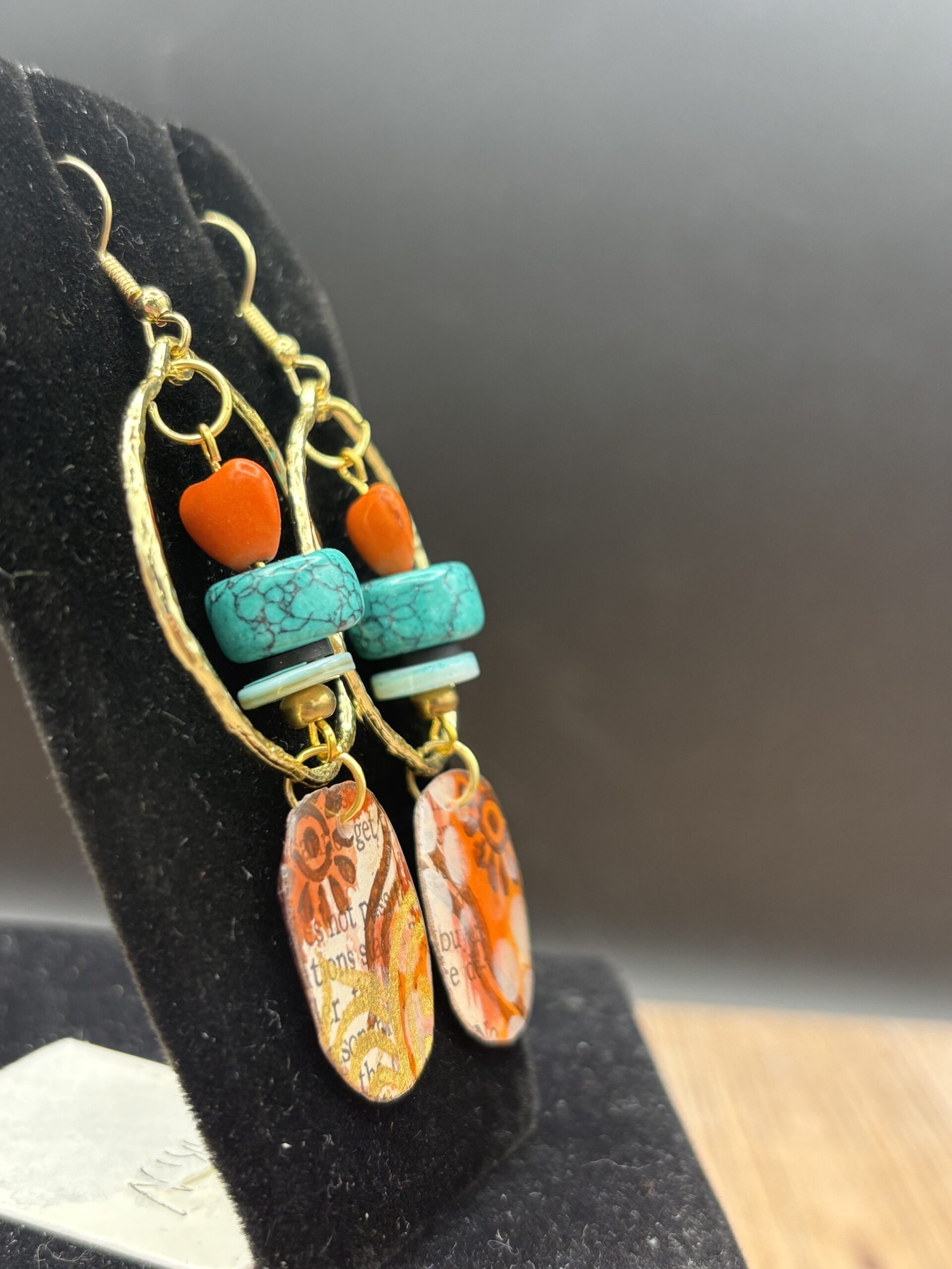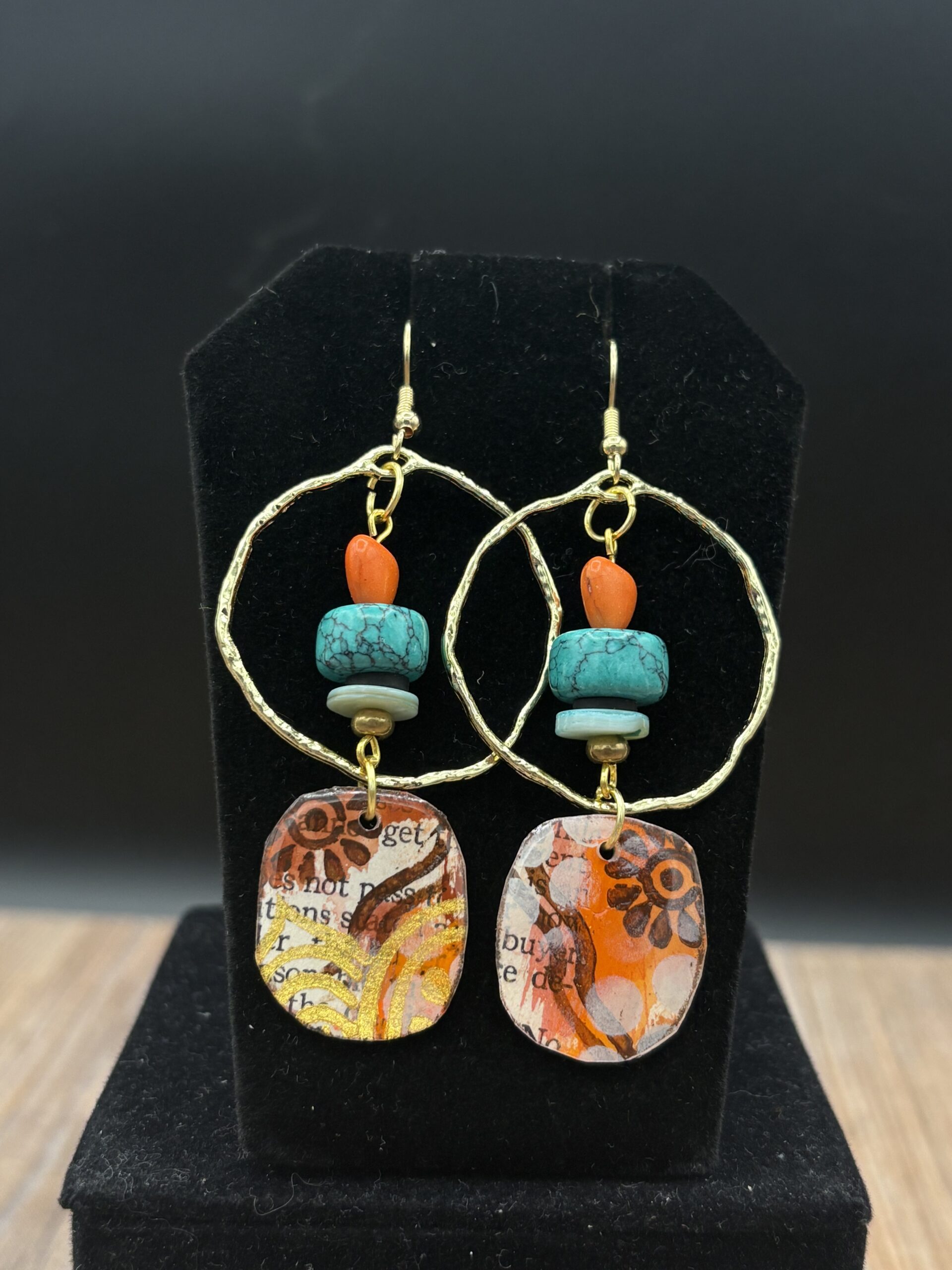 Orange Heart Bead Gold Tone Circle by Sharon Gilham SCS307E