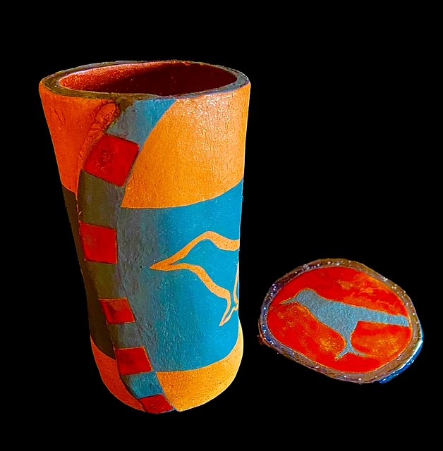 Also one of Mariann’s ceramic pieces “Fractured Teapot” was featured in the Sedona Arts Center “65 years Ceramics Invitational Exhibition” April, 2024. Two pieces were juried into the “Elements” show at SAC, August, 2024, “Sunset Raven” a ceramic piece and “Chasing the Comet” a painting.