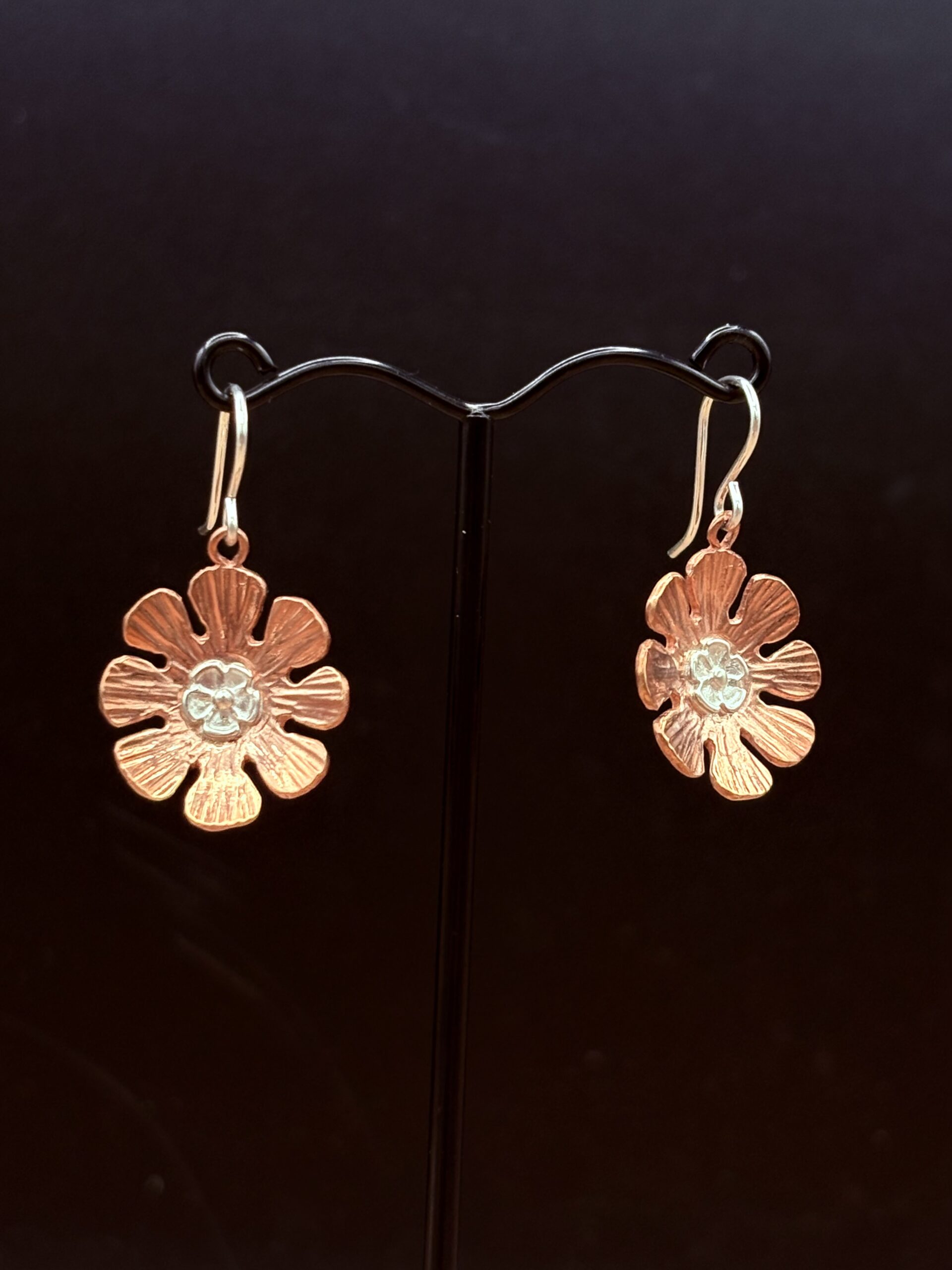 Red Bronze Flower Earrings with Sterling Accent by Tom Yazzie TYE-860