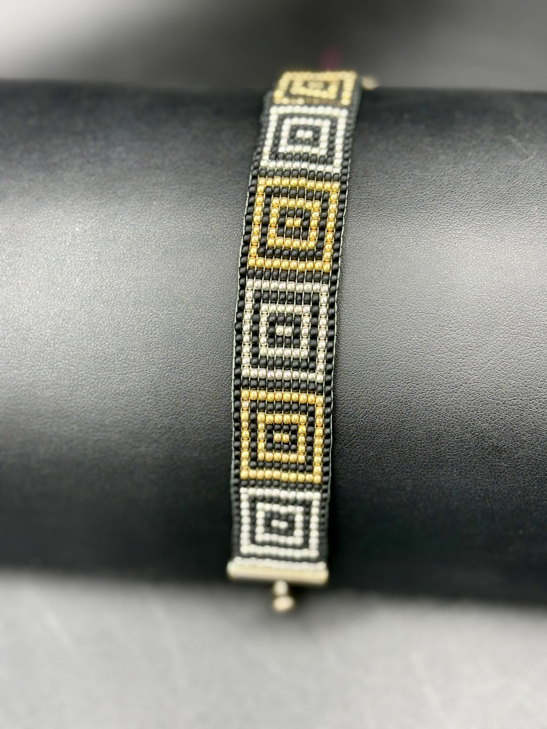 ‘Silver and Black Squares within Squares’ Bracelet by Nancy Leicht