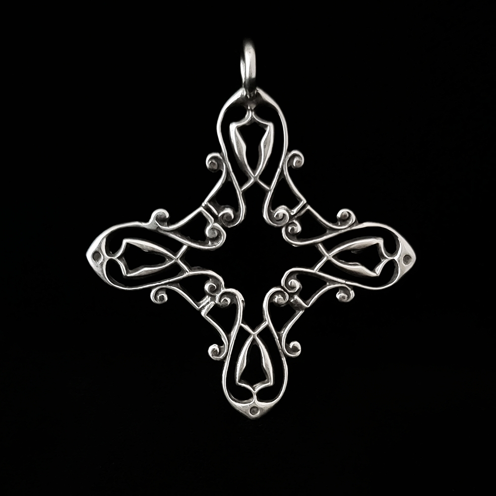 This cross was inspired by designs that embellish the Tour Saint-Jacques (literally St. James’ Tower”), a monument located in the 4th arrondissement of Paris on Rue de Rivoli at Rue Nicolas-Flamel. This 52 meter (171 ft) Flamboyant Gothic tower is all that remains of the former 16th century Church of Saint Jacques-de-la-Boucherie which was demolished in 1797 during the French Revolution, leaving only the tower. What remains of the destroyed church of St. Jacques is now concidered a national historic landmark.