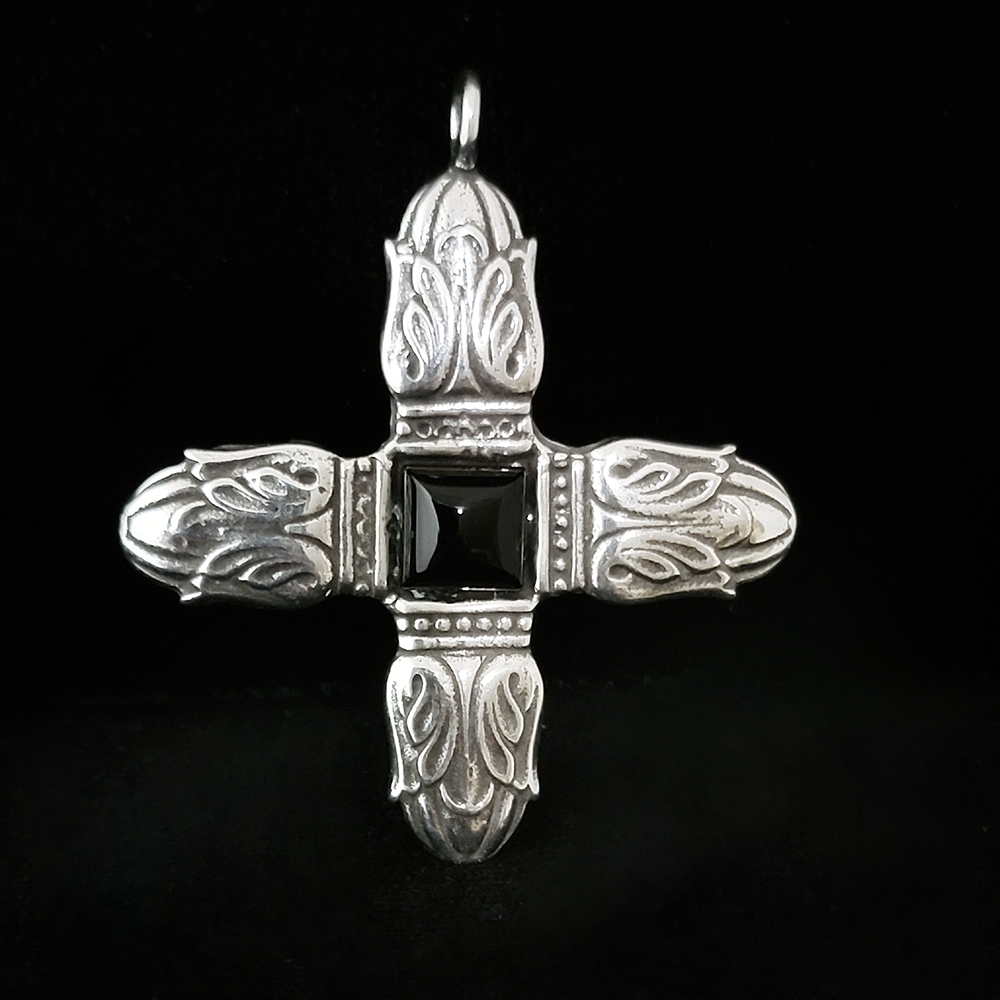 The design for this cross is inspired by bas-relief carvings that detail the nave of the Church of Sts. Peter and Paul in the North Beach district of San Francisco. This church was founded by the Salesian order which is the third largest order in the Catholic Church. Based on dedication of service to youth and family, the order was founded in the 19th century in the Piedmont area of northwest Italy st St. John Bosco.