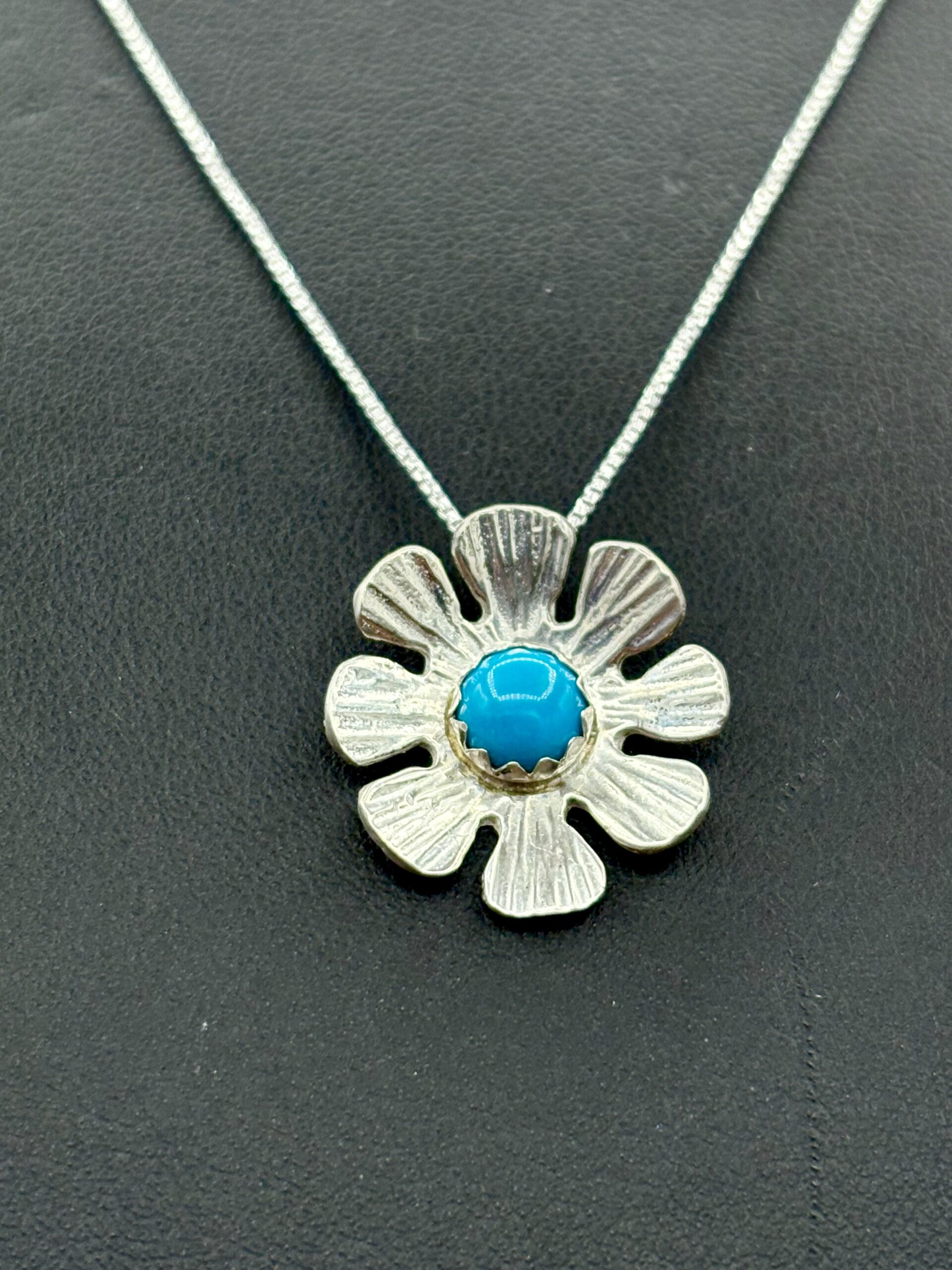Sterling Silver Flower Pendant with Turquoise by Tom Yazzie TYP-595