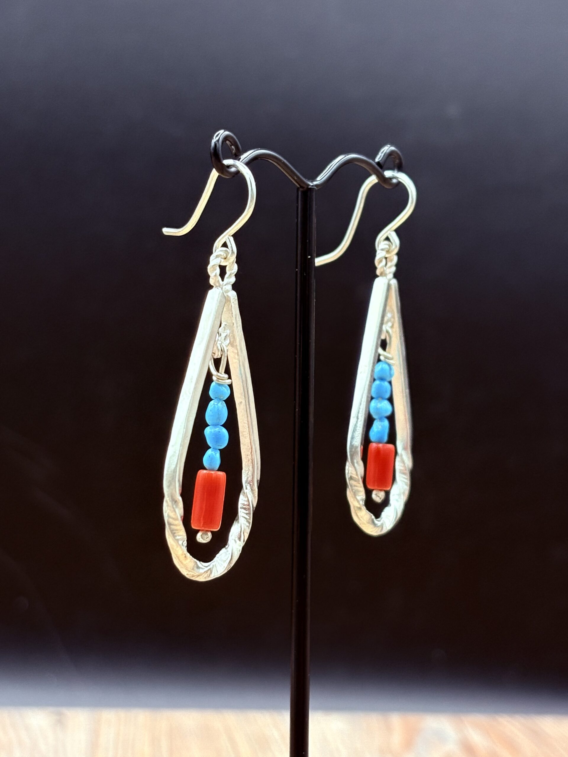 Sterling Silver Square Twisted Teardrop with Turquoise by Tom Yazzie TYE-790