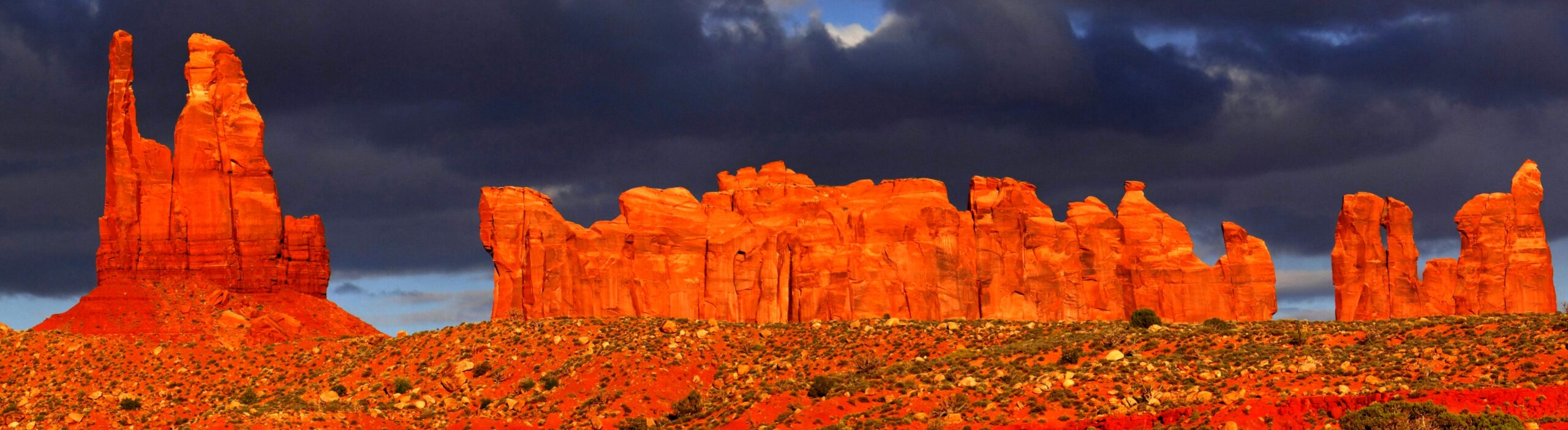 Monument Valley is an iconic symbol of the American West and the sacred place of the Navajo Nation. Sunset at Monument Valley often creates dramatic images, especially when a storm is approaching.