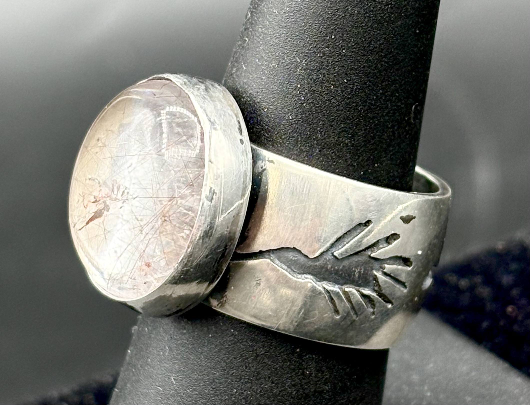 Tintype and Reticulated Quartz Ring with Thistle Overlay KM010 by Kris Mills